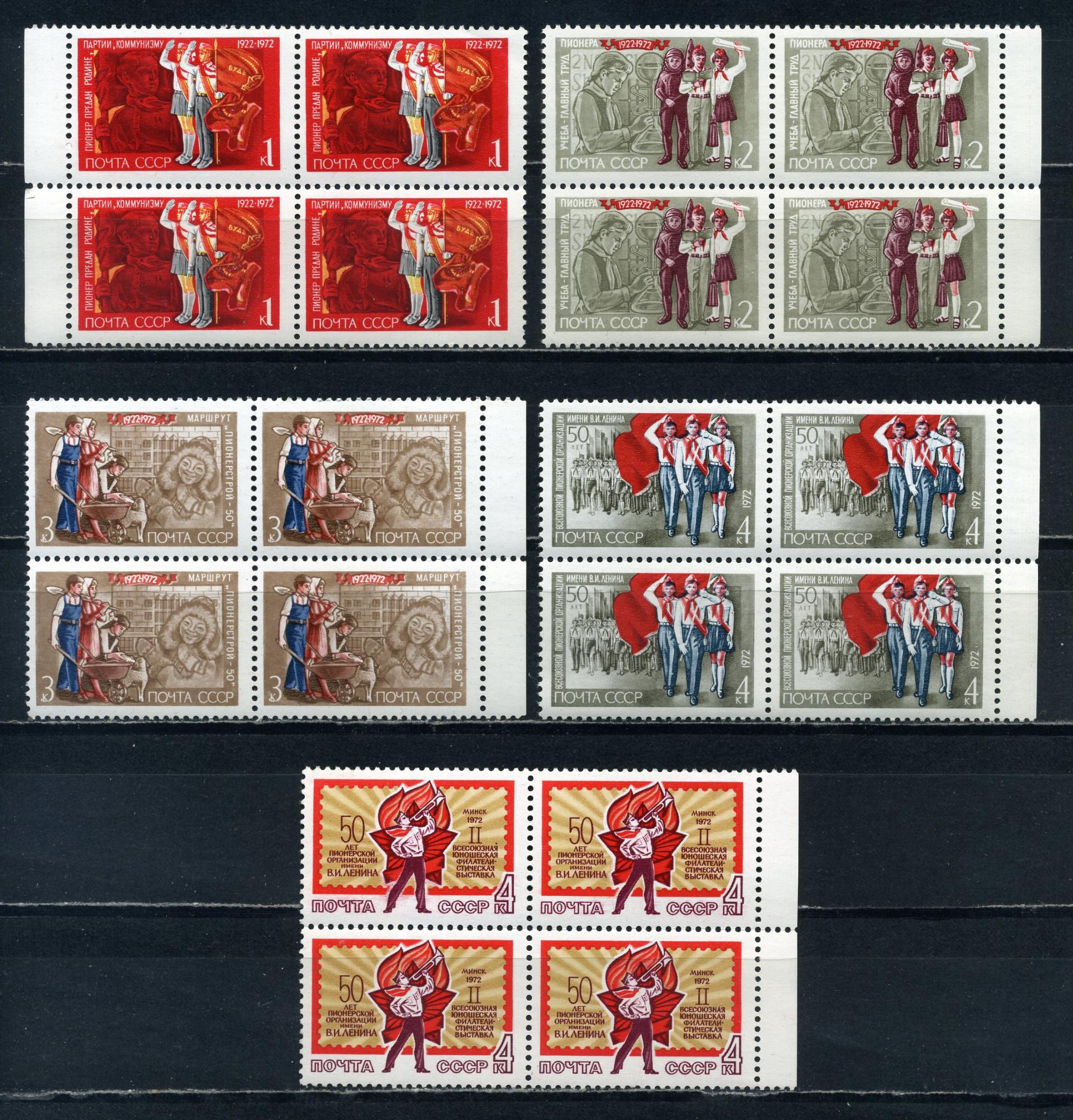 Почтовые марки. СССР. 1972г. 50-летие пионерии. №4120-4124. КБ (Кат.: 280р.).