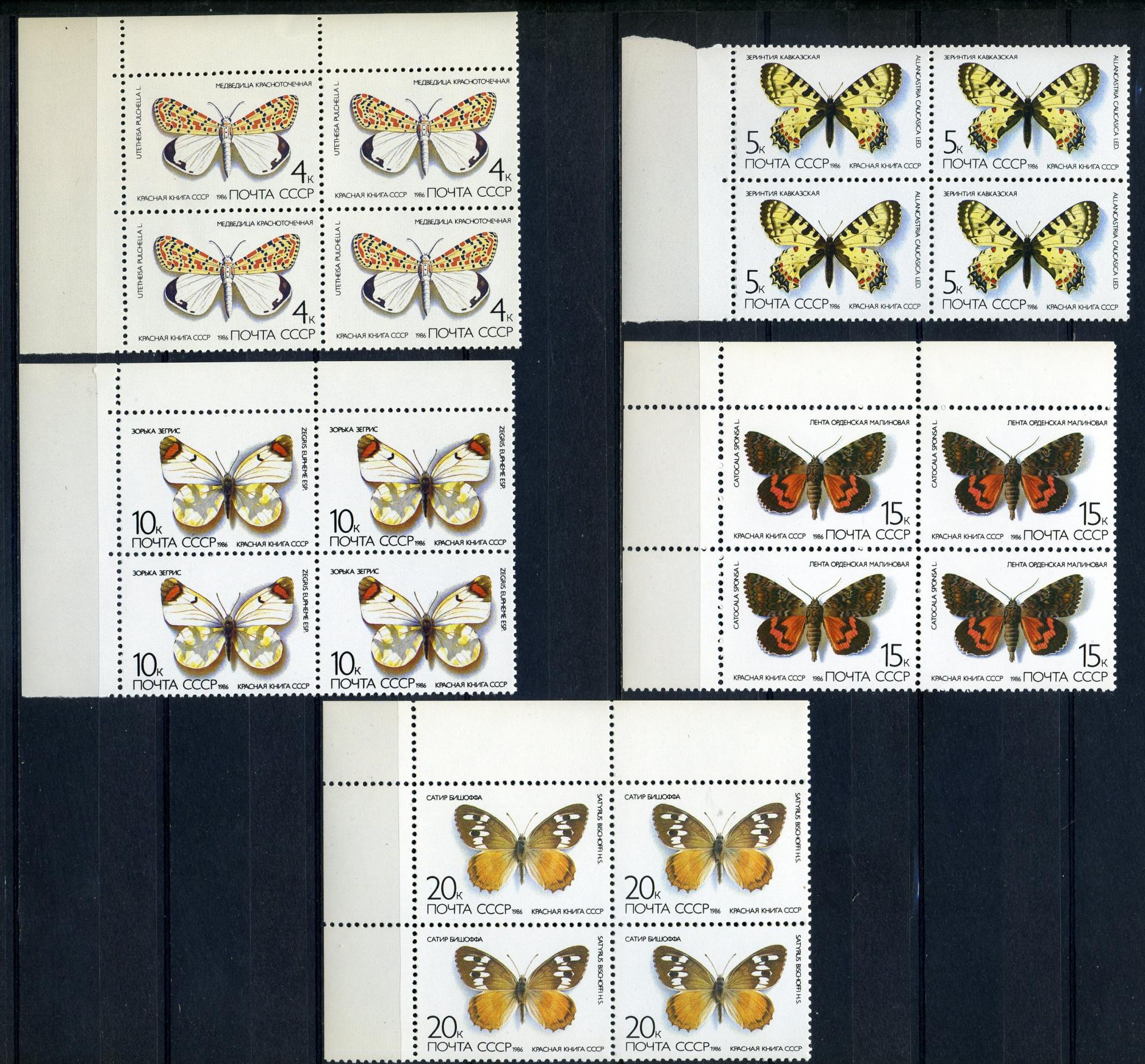 Почтовые марки. СССР 1986 г. Бабочки. № 5705-5709. КБ (Кат.: 320р.)