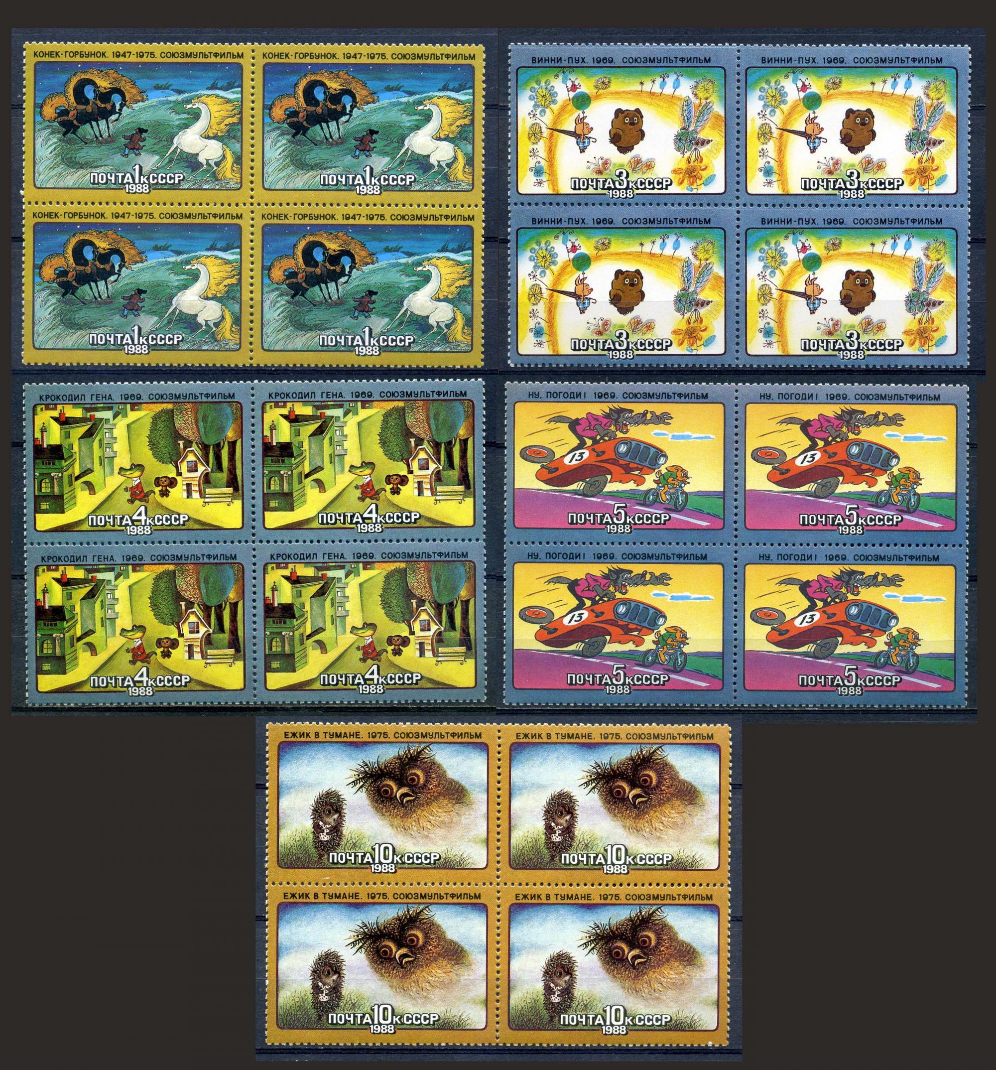 Почтовые марки. СССР 1988 г. Мультфильмы. № 5915-5919. КБ (Кат.: 480р.)
