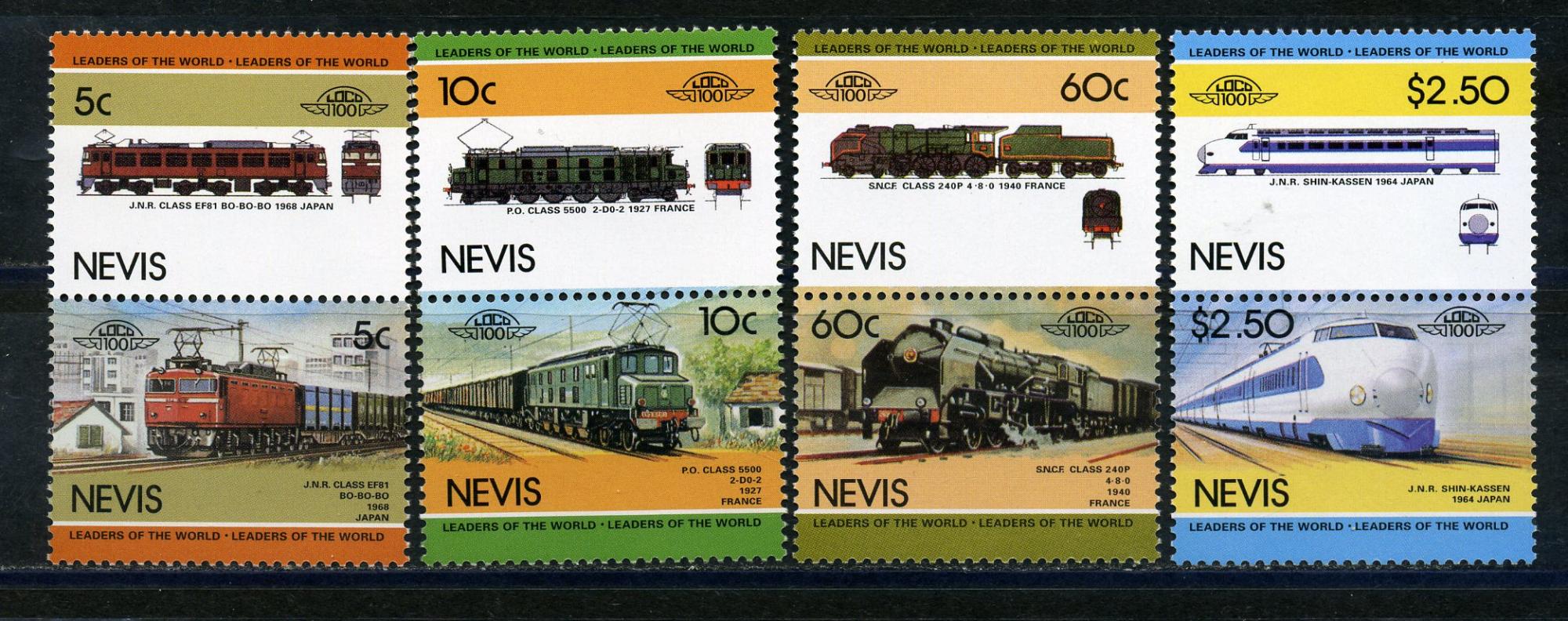 Почтовые марки. Невис 1984 г. Локомотивы. № 202-209