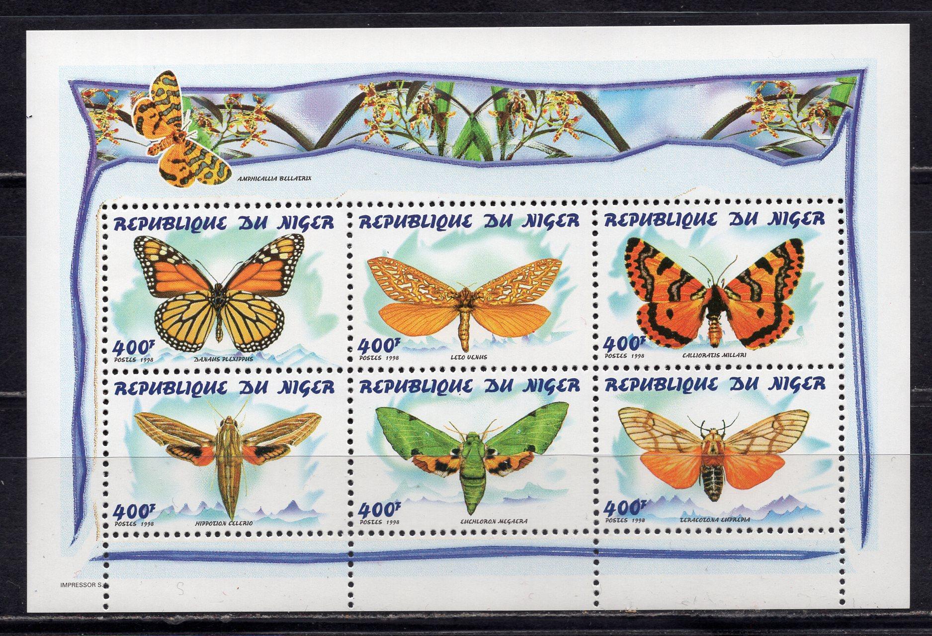 Почтовые марки. Нигер, 1998 г. Бабочки. МЛ. №1536-1541.