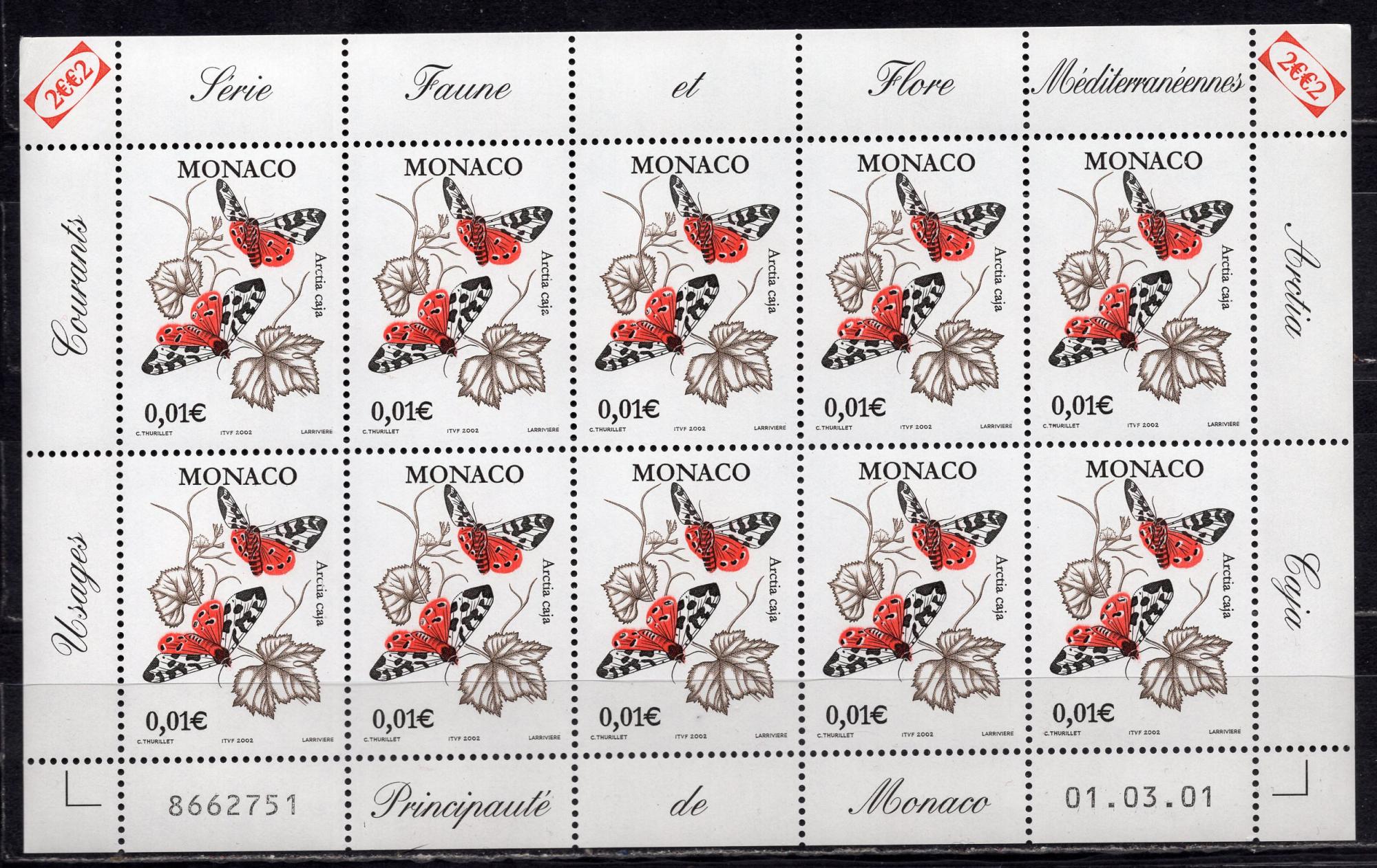 Почтовые марки. Монако, 2002г. Бабочки. Стандарт. МЛ. №2573.