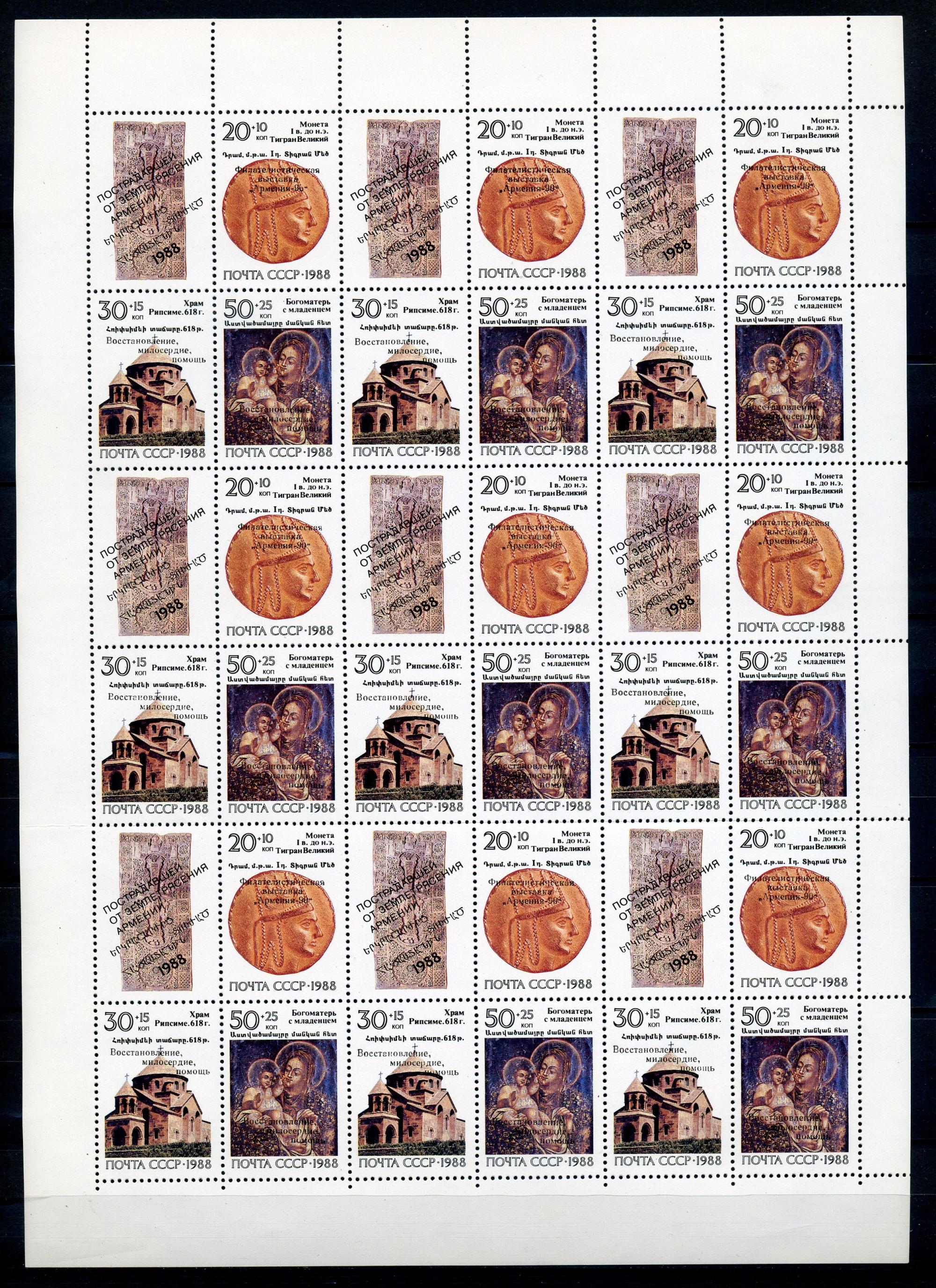 Почтовые марки. СССР 1990 г. Армения. Надпеч. № 6270-6272. ЛИСТ.