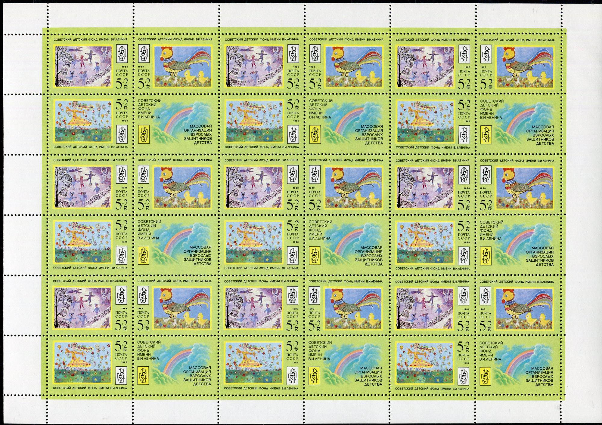 Почтовые марки. СССР. 1988. № 6007-6009. Детские рисунки. Лист.
