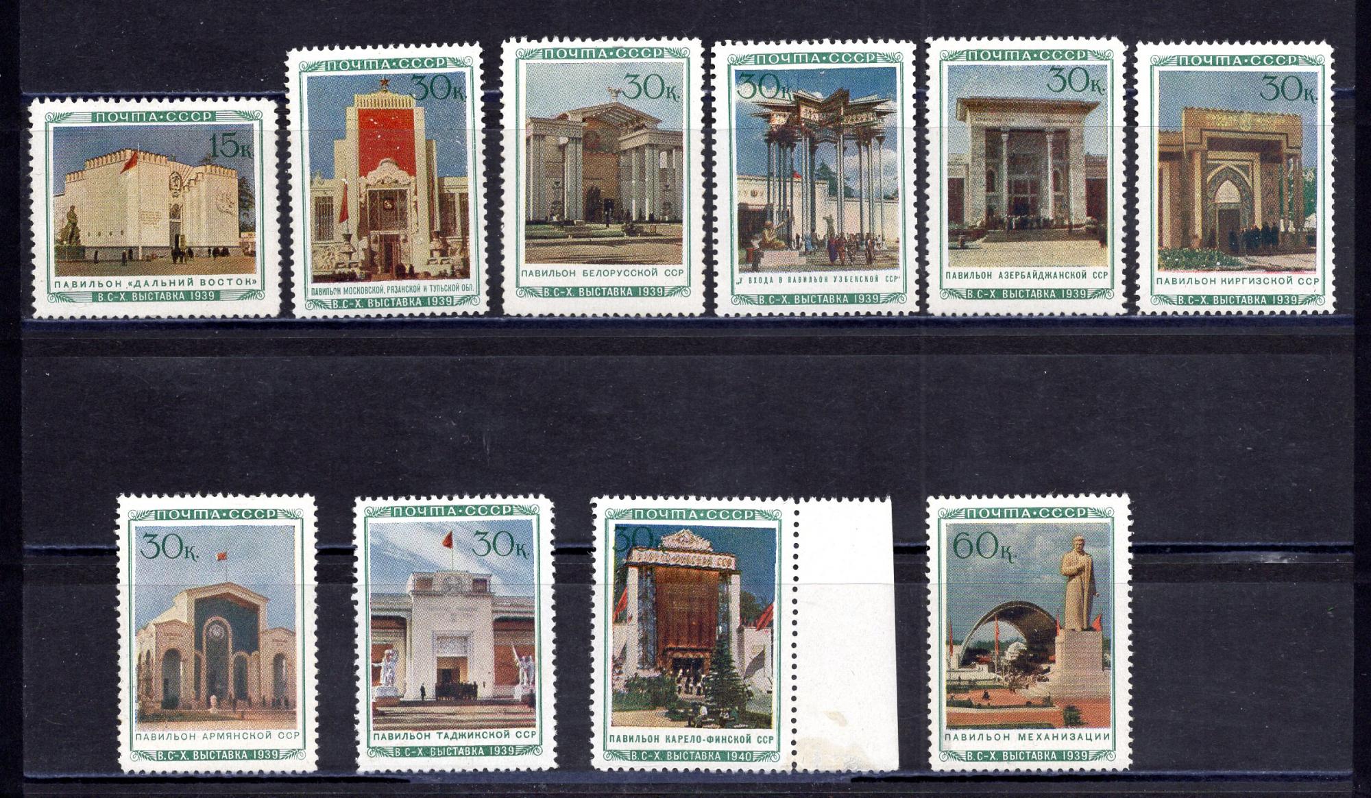 Почтовые марки. СССР. 1940г. Выставка Н/Х. Павильоны. №751-767, (Без:№751,№754,№755,№758,№759,№764,№766).