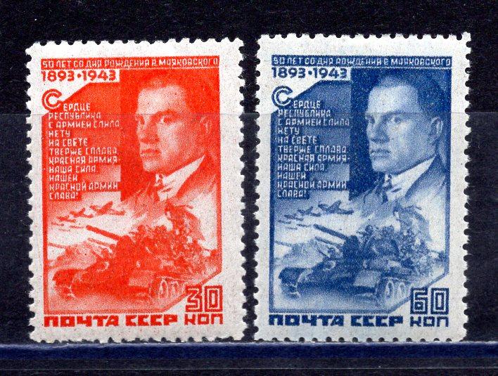 Почтовые марки. СССР. 1943г. Маяковский. №869-870.
