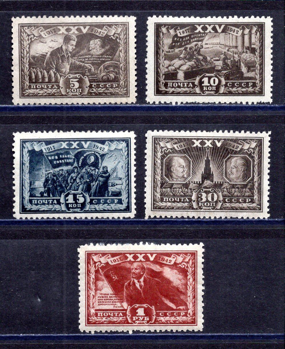 Почтовые марки. СССР. 1943г. Октябрь. №846-848, №850, №852. (См.сост.)