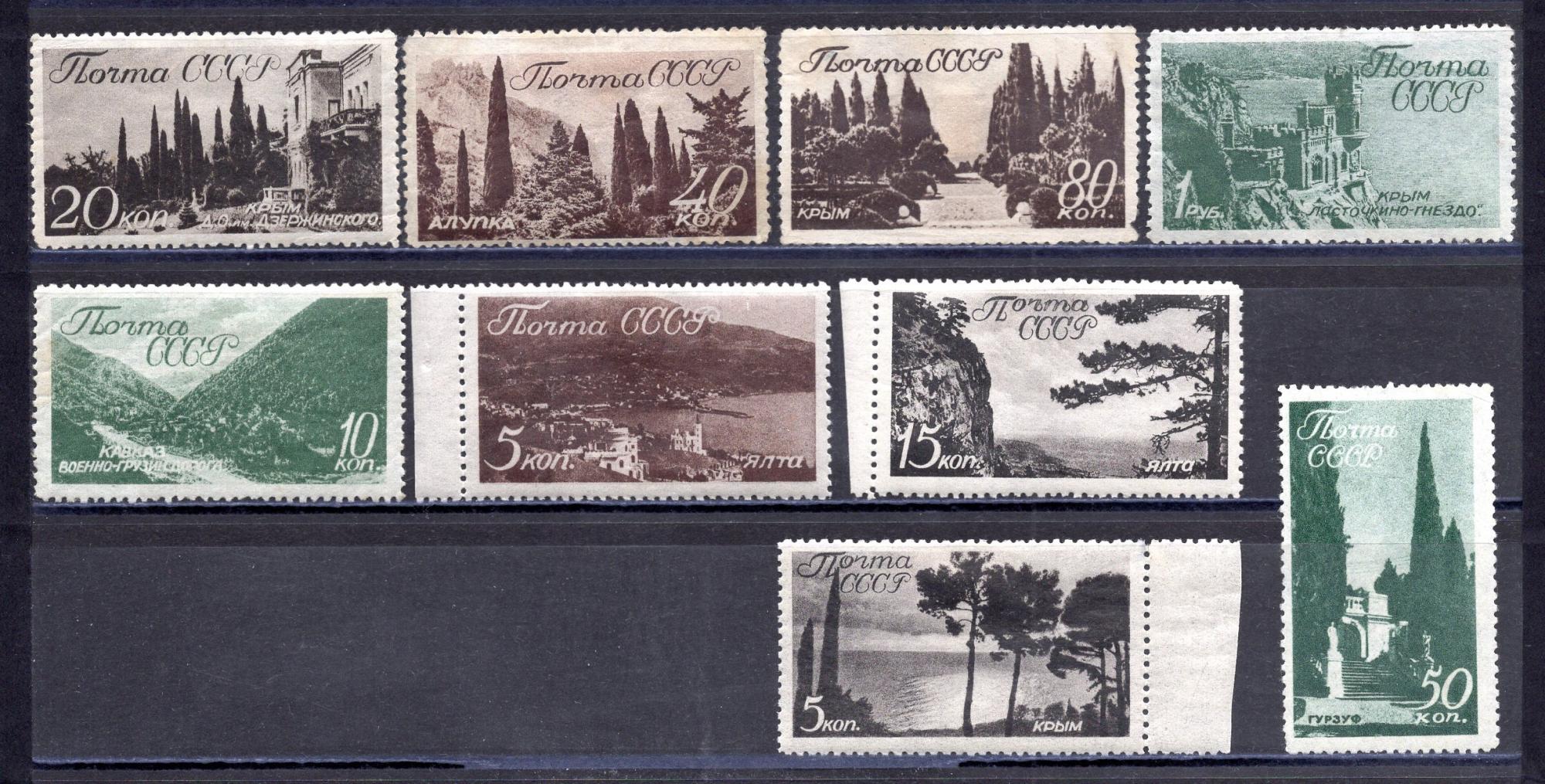 Почтовые марки. СССР. 1938г. Виды Крыма и Кавказа. №613-624 (Без: №616,№618,№620). (См.сост.)