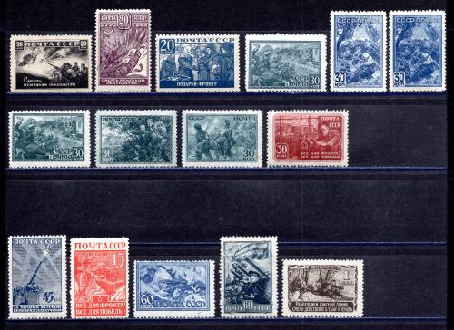 Почтовые марки. СССР. 1942-1943г. Война. №830-845 (Без №835,№839,№844,) + №833Р(ГР), №834Р(ВР). Чист/Чист.с Накл.