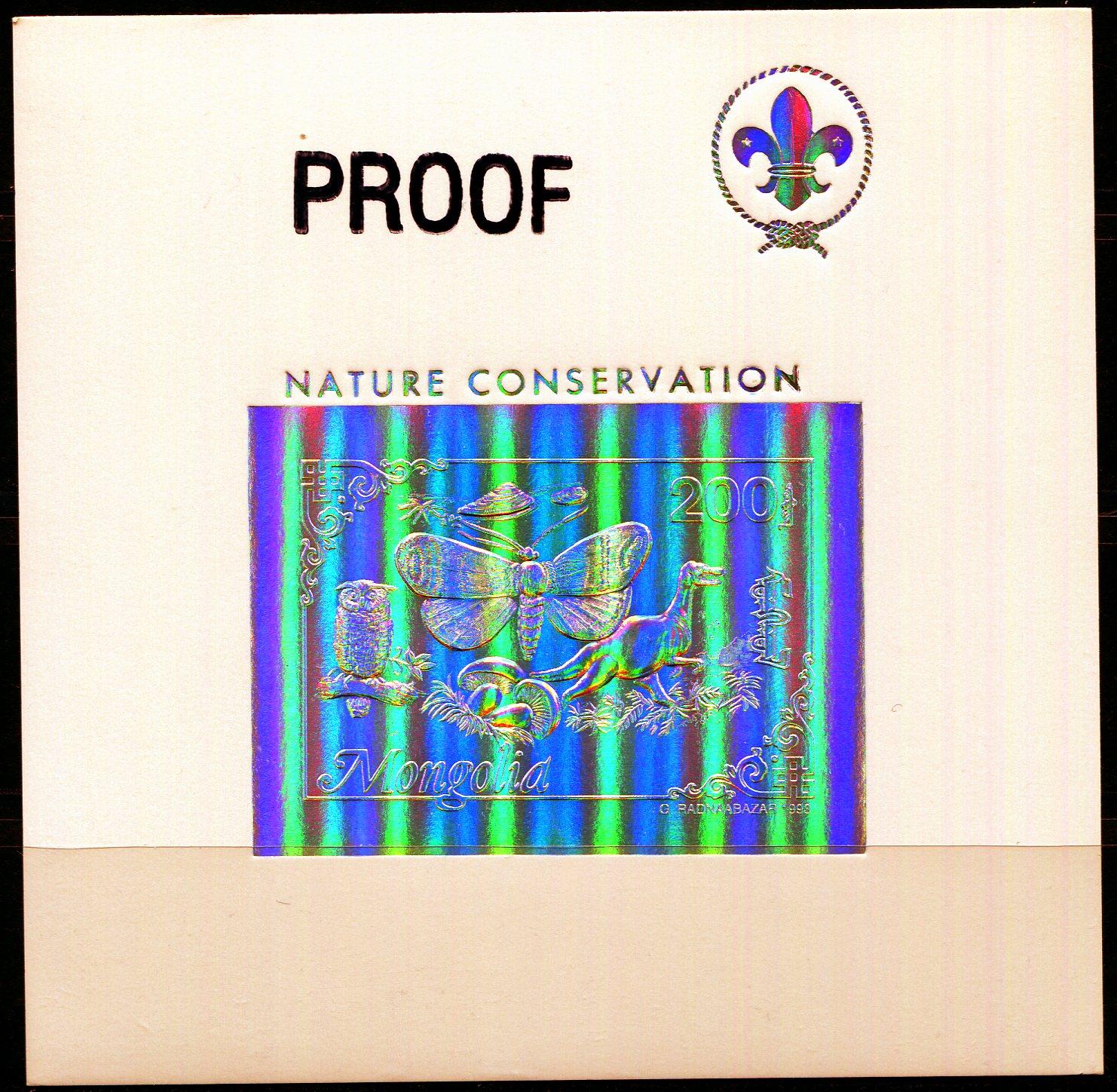 Почтовые марки. Монголия. 1993. Бабочка. Динозавр. ГОЛОГРАФИЯ. Проба. № Бл. 211 (Mi: 25.00 Евро).