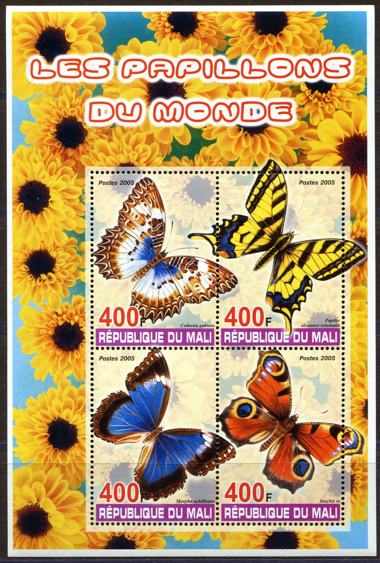 Почтовые марки. Мали. 2005. Бабочки. МЛ. (некатал.).