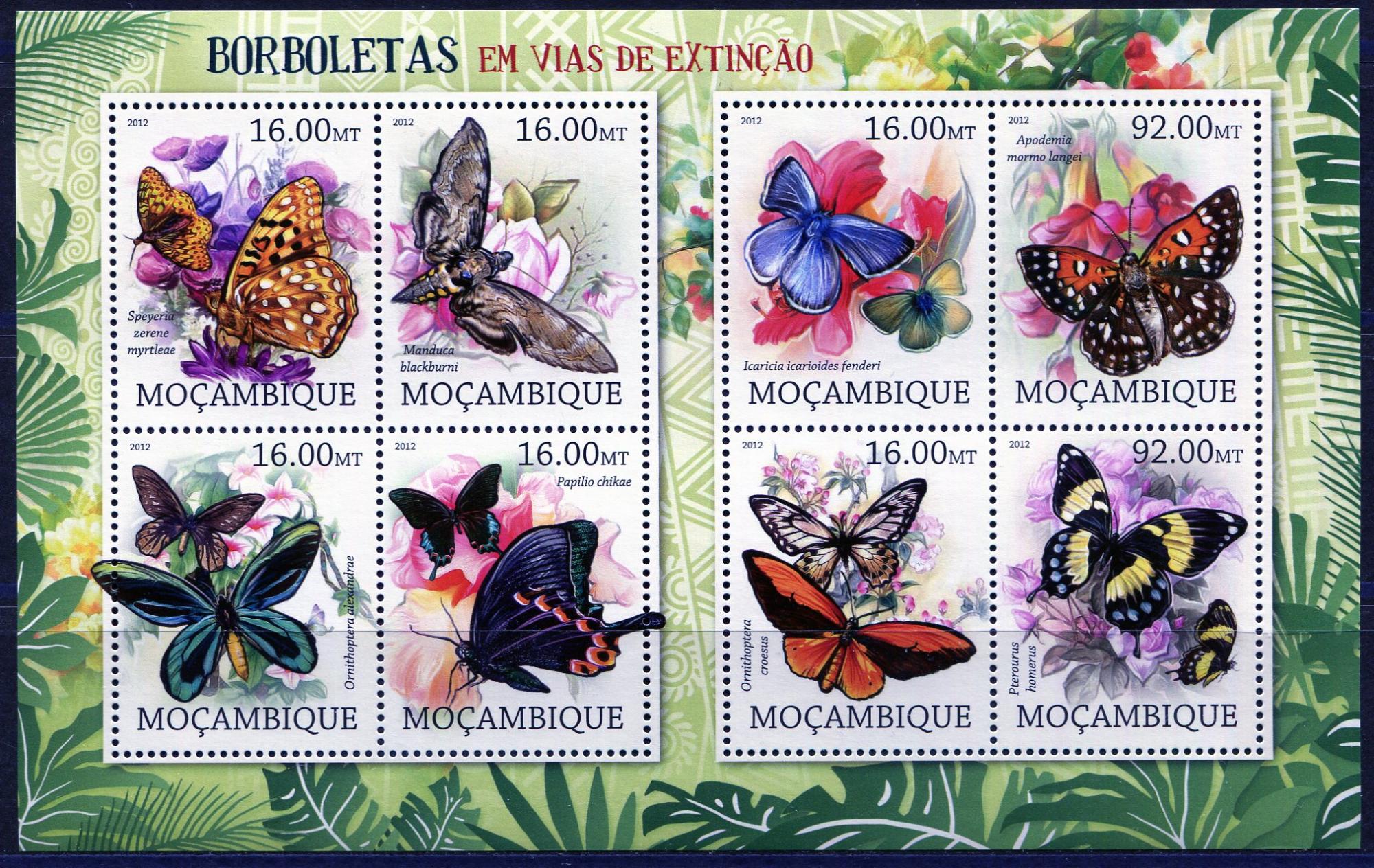 Почтовые марки. Мозамбик. 2012. Бабочки. МЛ. № 5656-5663 (Mi: 16.00 Евро).