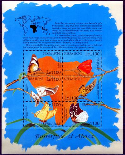 Почтовые марки. Сьерра-Леоне. 2001. Бабочки. МЛ. № 3968-3973. МЛ (Mi: 12.00 Евро)