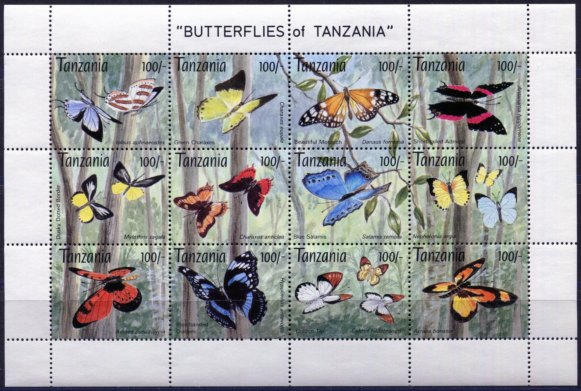 Почтовые марки. Танзания. 1993. Бабочки. МЛ. № 1629-1640. МЛ (Mi: 15.00 Евро)