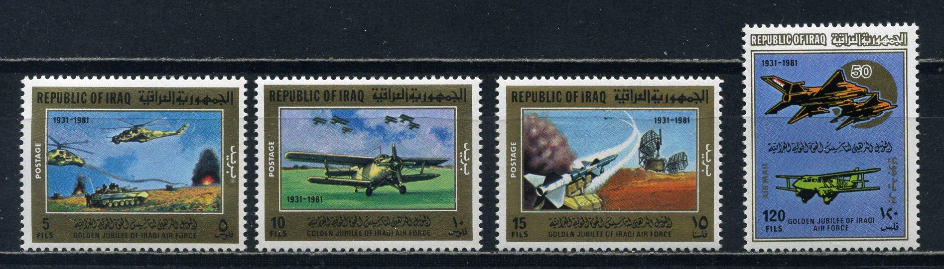 Почтовые марки. Ирак. 1981г. Армия. Самолёты. №1092-1095.