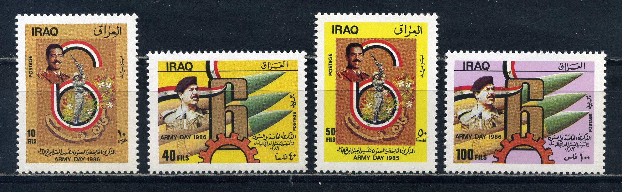 Почтовые марки. Ирак. 1986г. Хуссейн. Армия. №1290-1293.