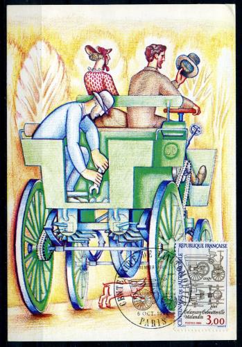 Картмаксимум. Франция 1984 г. Автомобиль Дебутвиль Деламар-Маланден, 100 лет со ДР.