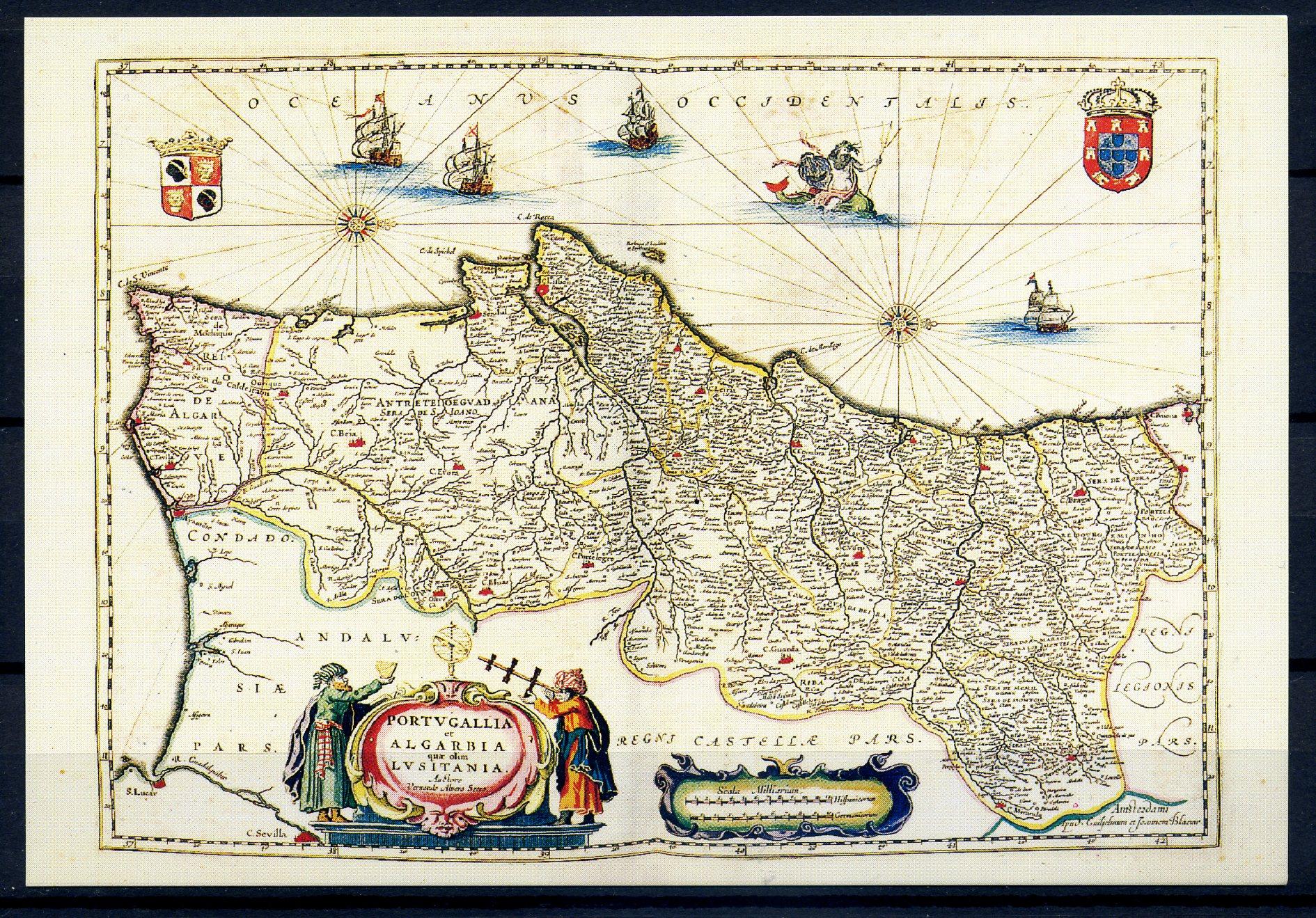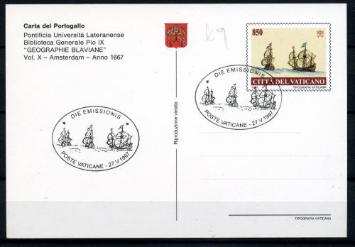 Почтовая карточка со СГ. Ватикан 1997 г. Карта Португалии. Библиотека Папского Латеранского университета, Блавианская география.