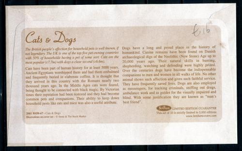 Конверт с маркой и СГ. Великобритания 2001 г. Коты и собаки. Ограниченный тираж (5000 экз).