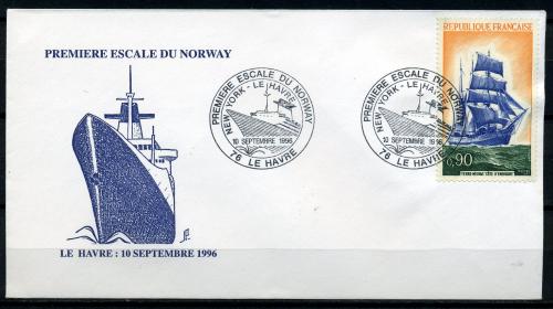 КПД с маркой и СГ. Франция 1972 г. Ньюфаундлендская яхта "Côte d'Emeraude". СГ - 1996 г.