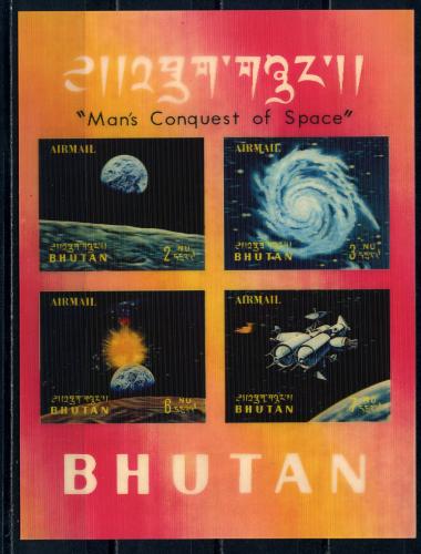 Почтовые марки. Бутан. 1970г. Космос. Объёмные. №420-423. Блок №43 (Mi: 40.00 Евро).
