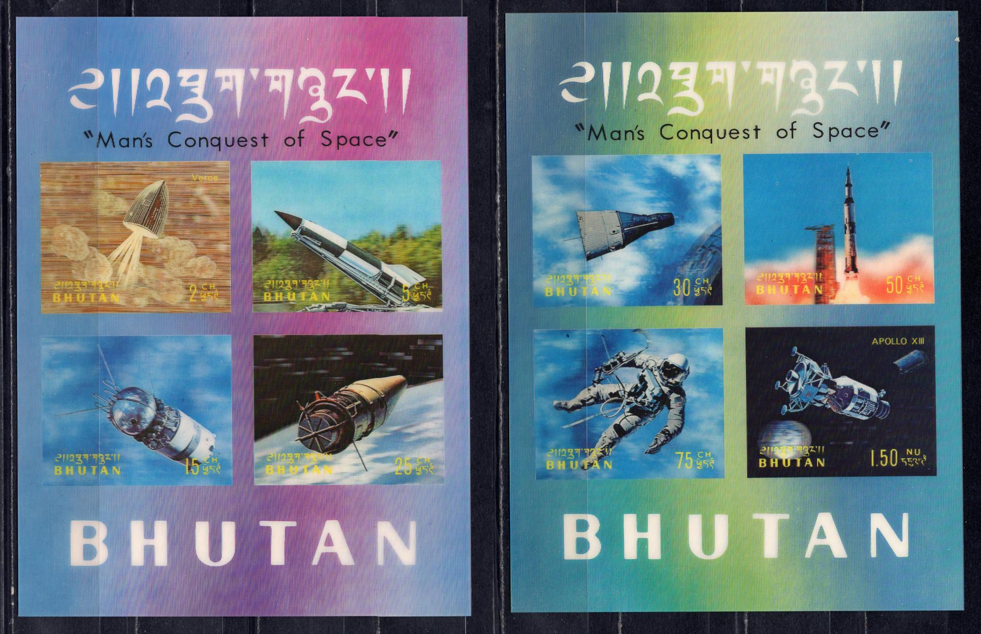 Почтовые марки. Бутан. 1970г. Космос. Объёмные. № Бл. 41, 42. (Mi 30.0 e)