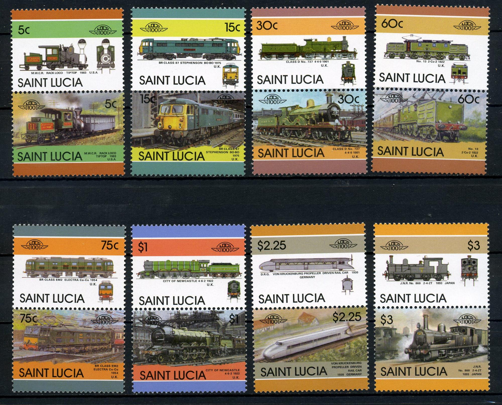Почтовые марки. Сент-Люсия 1986 г. Локомотивы. № 814-829