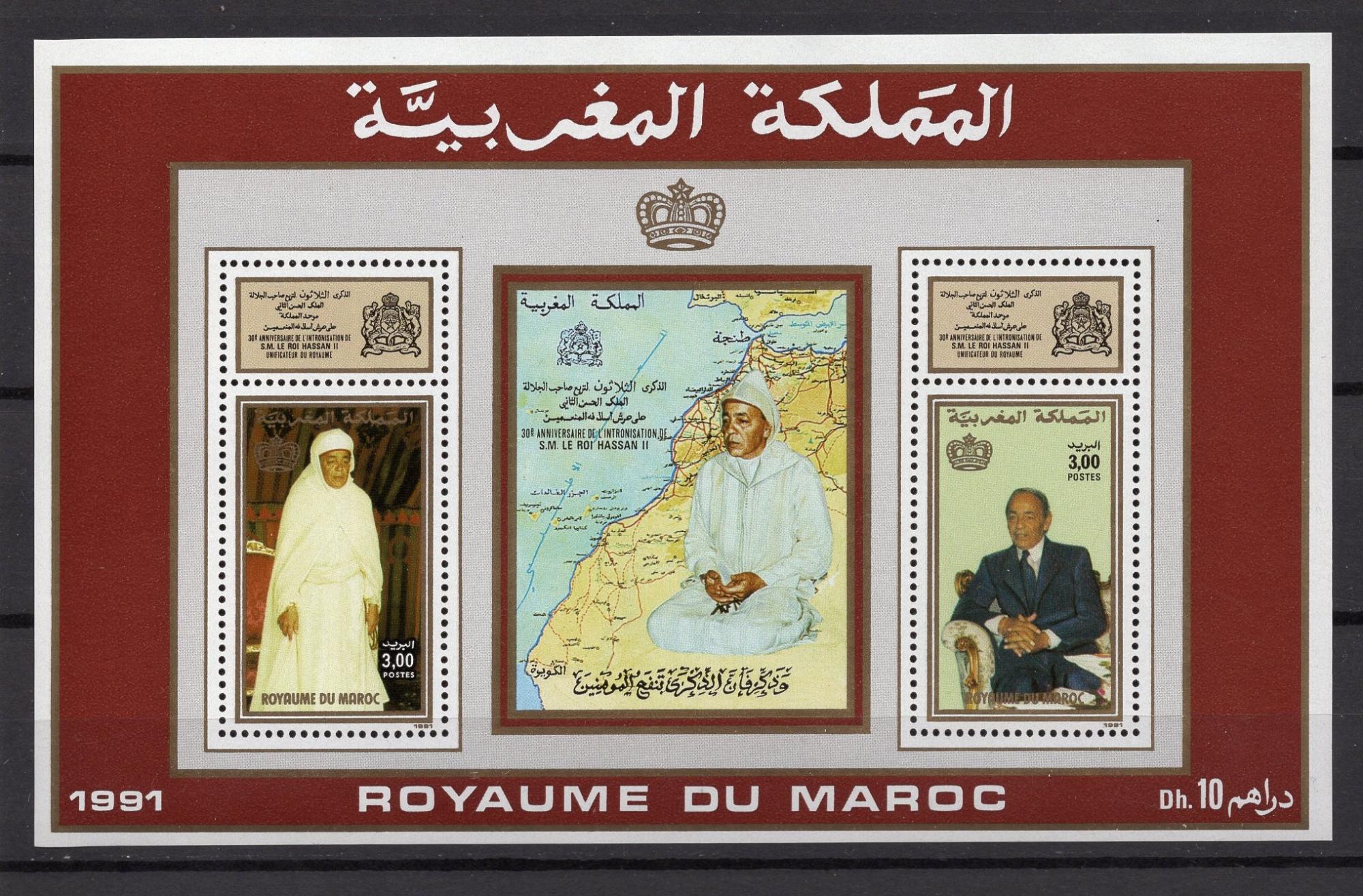 Почтовые марки. Марокко, 1991 г. Король Хассан II. Бл. 20