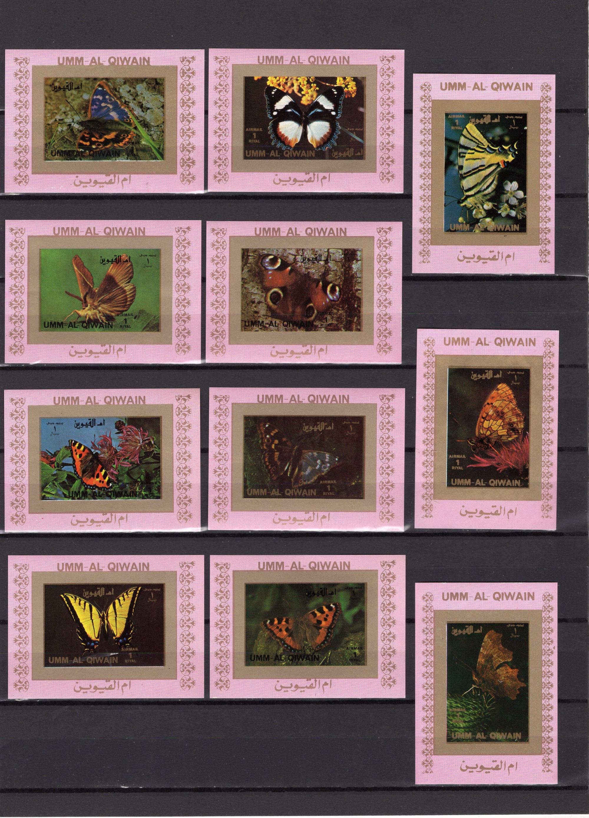 Почтовые марки. Умм-эль-Кайвайн, 1972 г. Бабочки. Люкс-блоки. Комплект. №1498-1513В. Безз.
