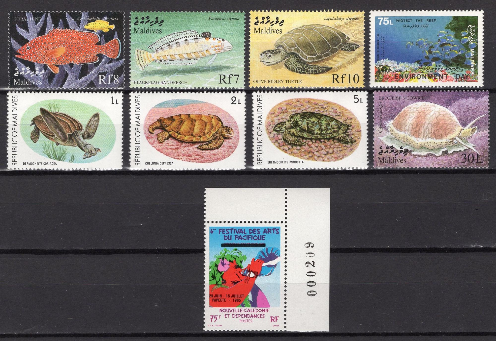 Почтовые марки. Мальдивы, 1980-1999г. Рыбы и черепахи. Сб. лот. №863-865 etc.