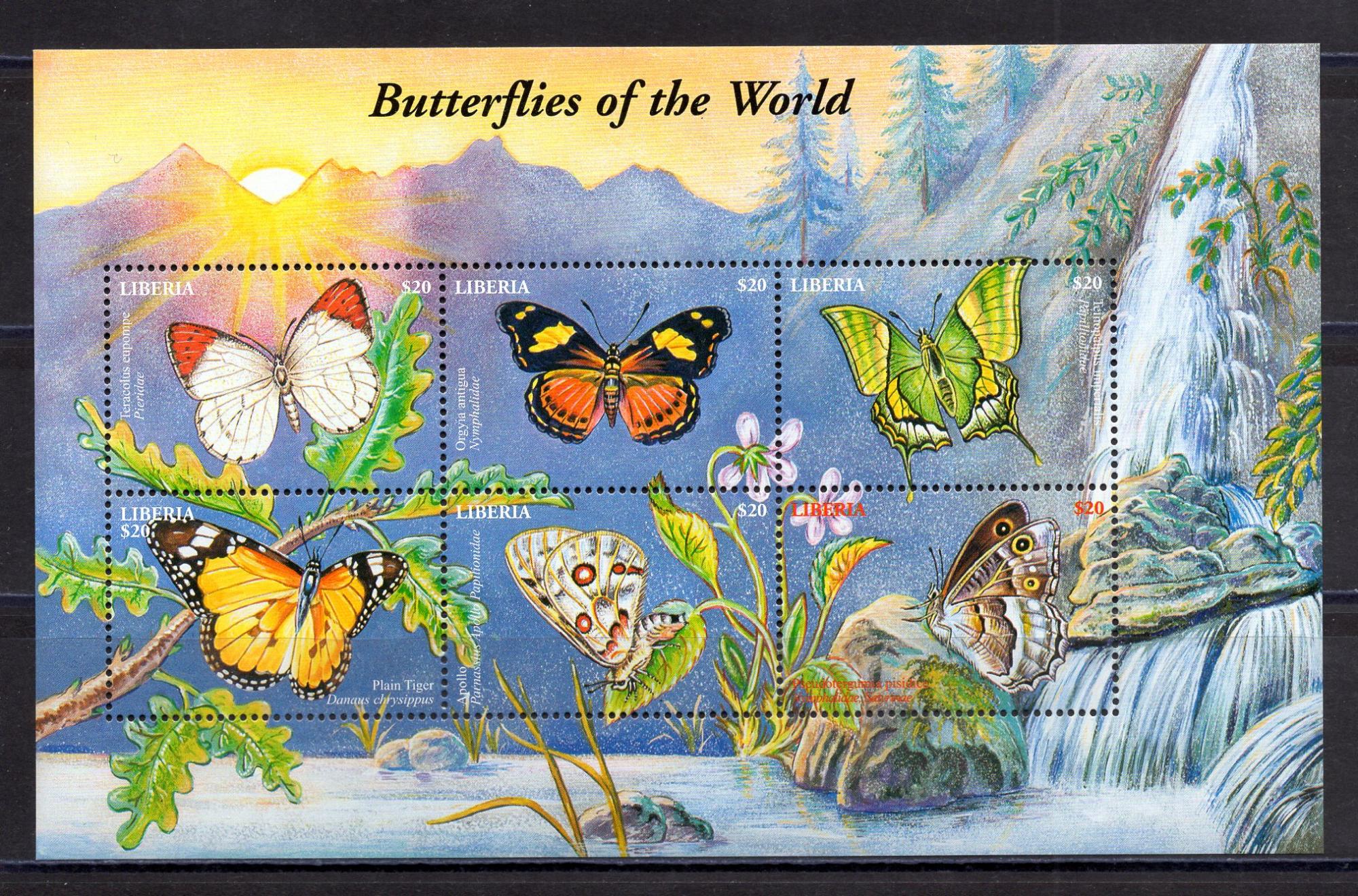Почтовые марки. Либерия. 2002г. Бабочки. №4521-4526.