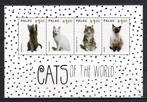 Почтовые марки. Палау. 2013г. Кошки. Русская Голубая. МЛ. №3282-3285. (из серии)