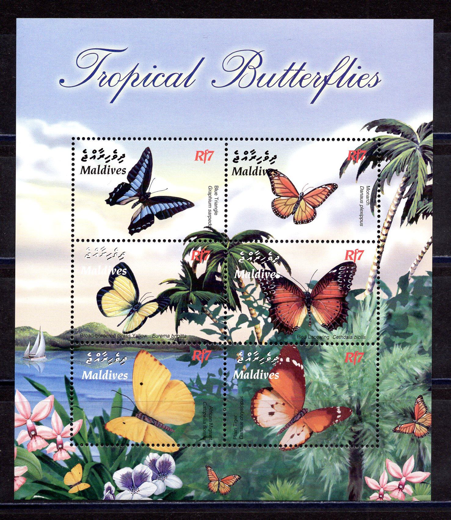 Почтовые марки. Мальдивы. 2003г. Бабочки Тропиков. МЛ. №4192-4197.