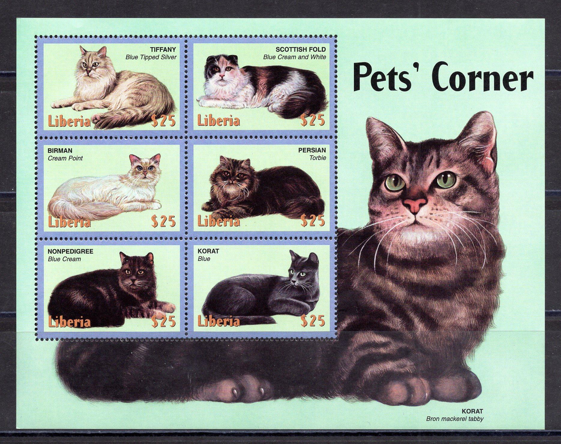 Почтовые марки. Либерия. 1999г. Кошки. МЛ. №2533-2538.