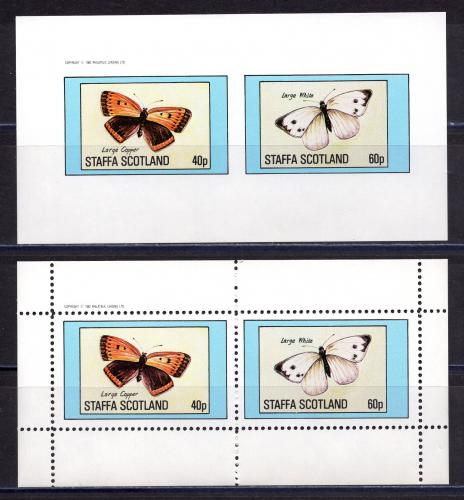 Почтовые марки. Стаффа. 1982г. Бабочки. Зубц. + Беззубц.