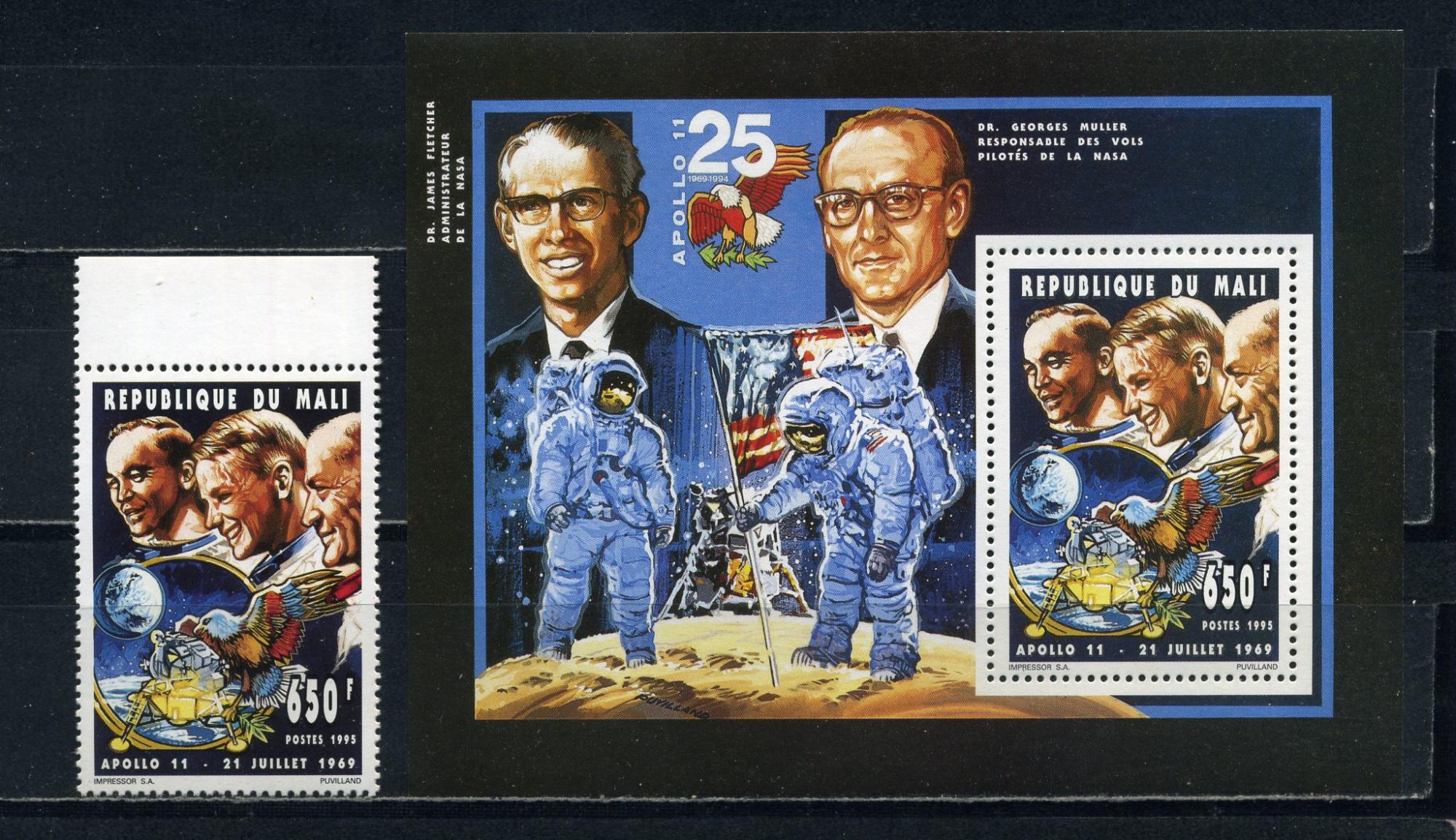 Почтовые марки. Мали. 1995г. Космос. Аполло-11. №1340. Блок № D68.