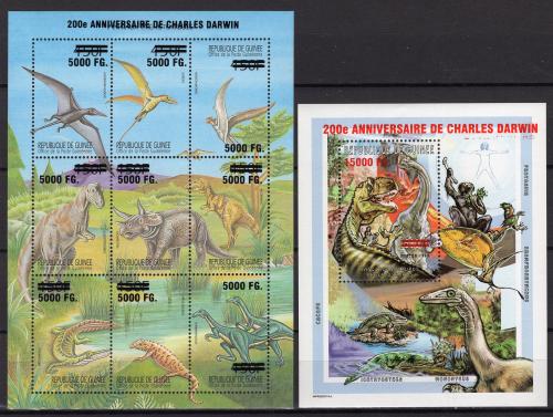 Почтовые марки. Гвинея, 2009 г. Динозавры. №6785-6793, Бл. 1736. Надпечатка. (50,0 е)