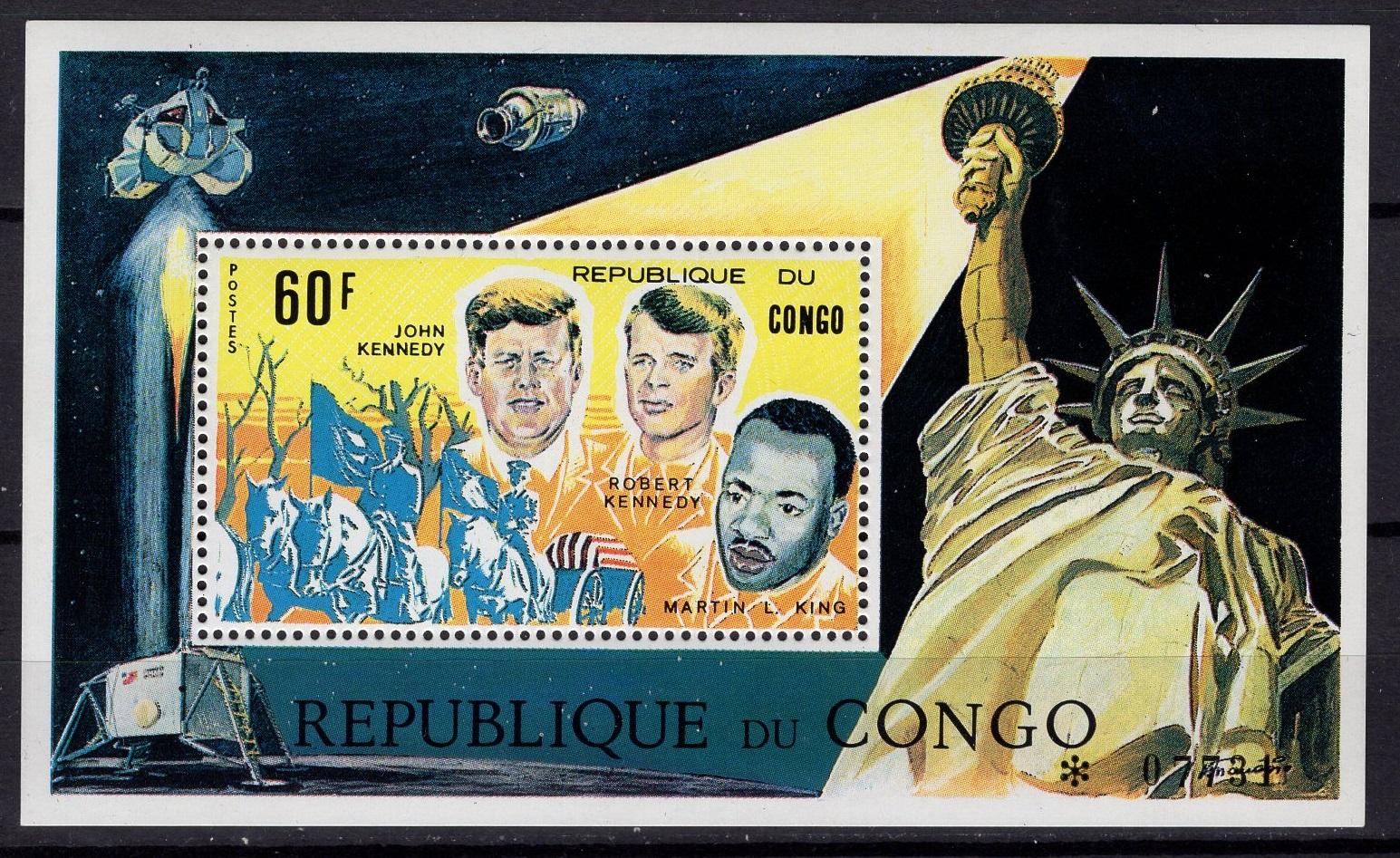 Почтовые марки. Конго. 1970г. Космос. Братья Кеннеди. Убиенные. Блок №6.