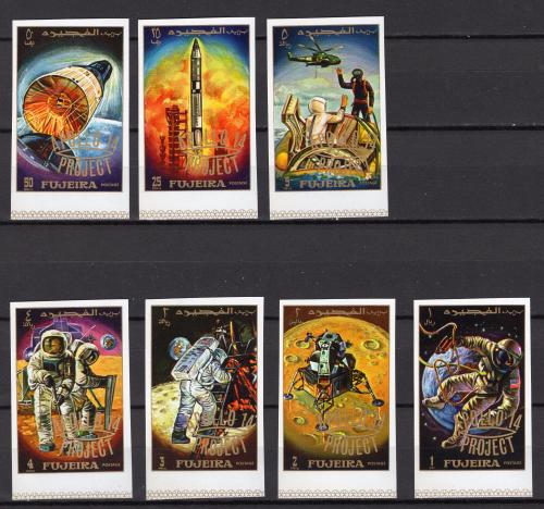 Почтовые марки. Фуджайра. 1970г. Космос. Аполло-14. Надпечатка. №463в-469в. Беззубц.