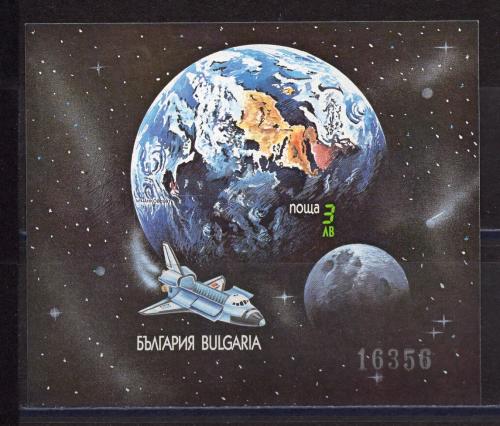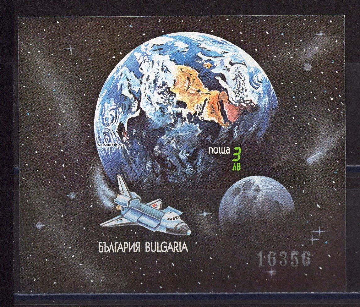 Почтовые марки. Болгария. 1991г. Космос. Блок №215в. Беззубц.