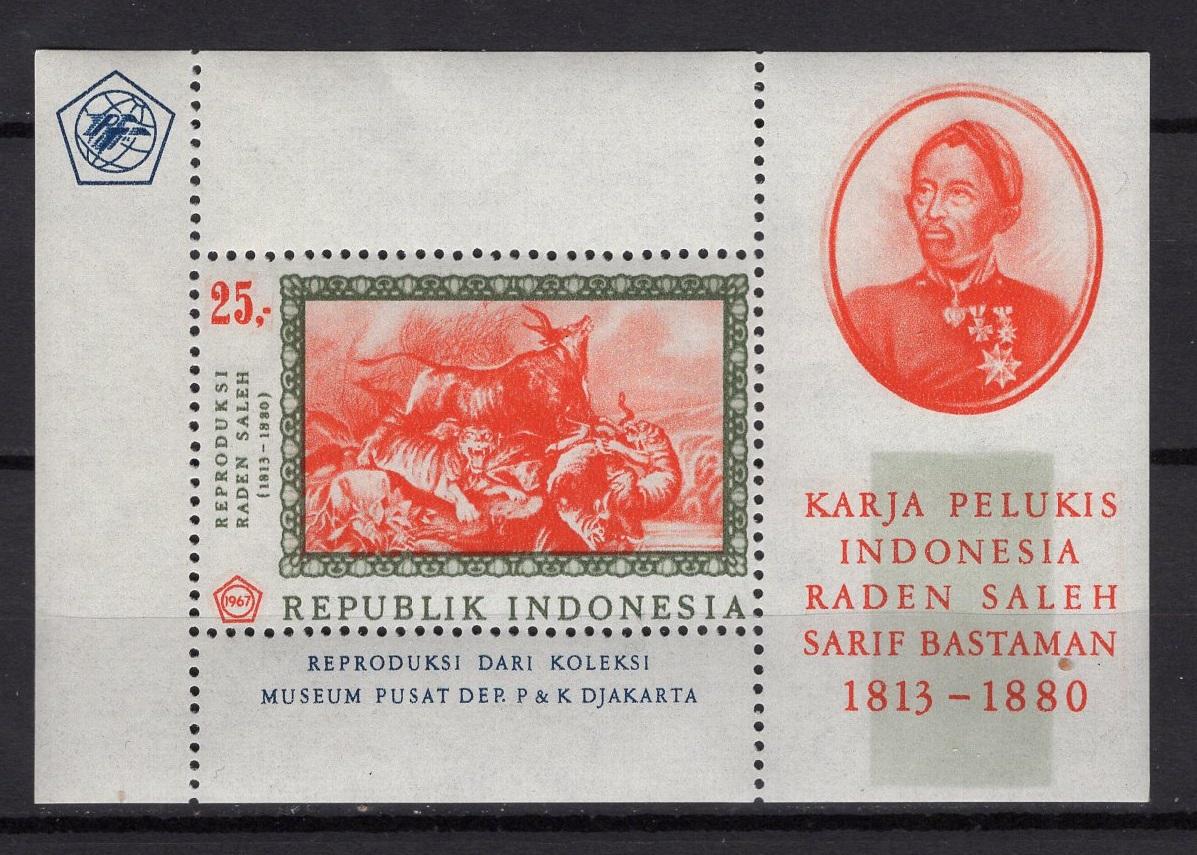 Почтовые марки. Индонезия, 1967 г. Живопись. Раден. Салех. Бл. 8