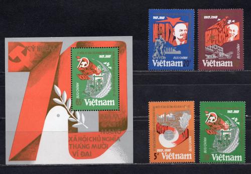 Почтовые марки. Вьетнам. 1987г. 70-летие Октября!. Ленин. Хо Ши Мин. Блок №55. №1832-1835.