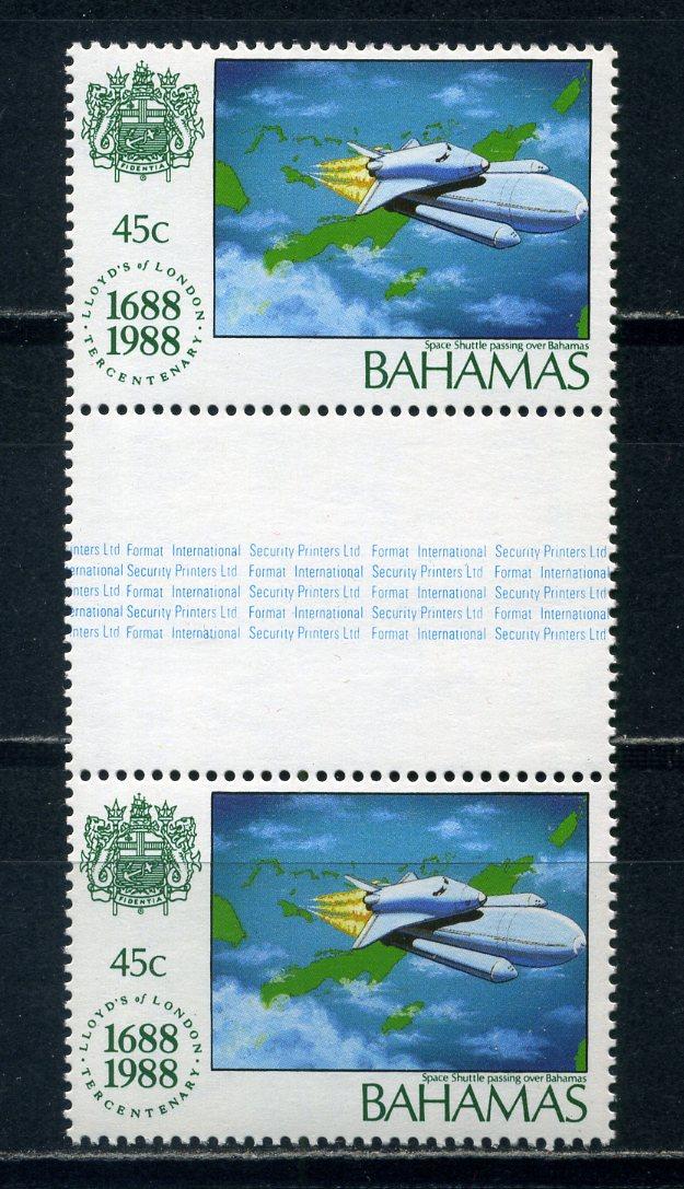 Почтовые марки. Багамы. 1988г. Космос. Шаттл над страной. Гаттер-пара. №684.