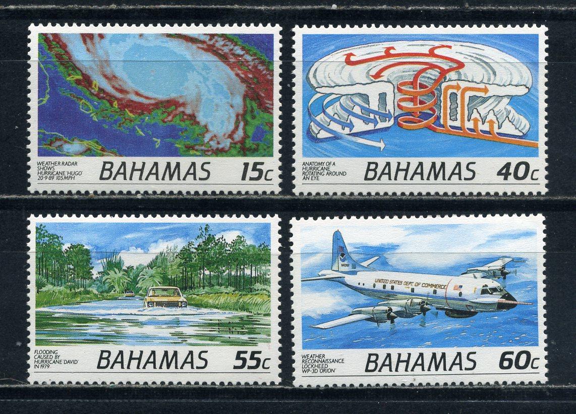 Почтовые марки. Багамы. 1991г. Ураган Хьюго. Атмосферные явления. №760-763 (Mi: 11.00 Евро)