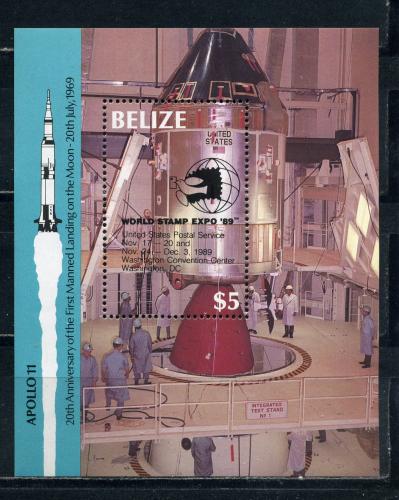Почтовые марки. Белиз. 1989г. Космос. Аполло-11. Надпечатка ЭКСПО. Блок №98 (Mi: 10.00 Евро).