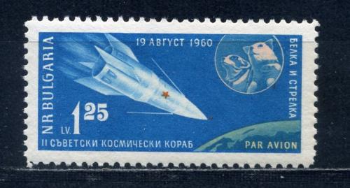 Почтовые марки. Болгария. 1961г. Космос. Собаки Белка и Стрелка. №1197.