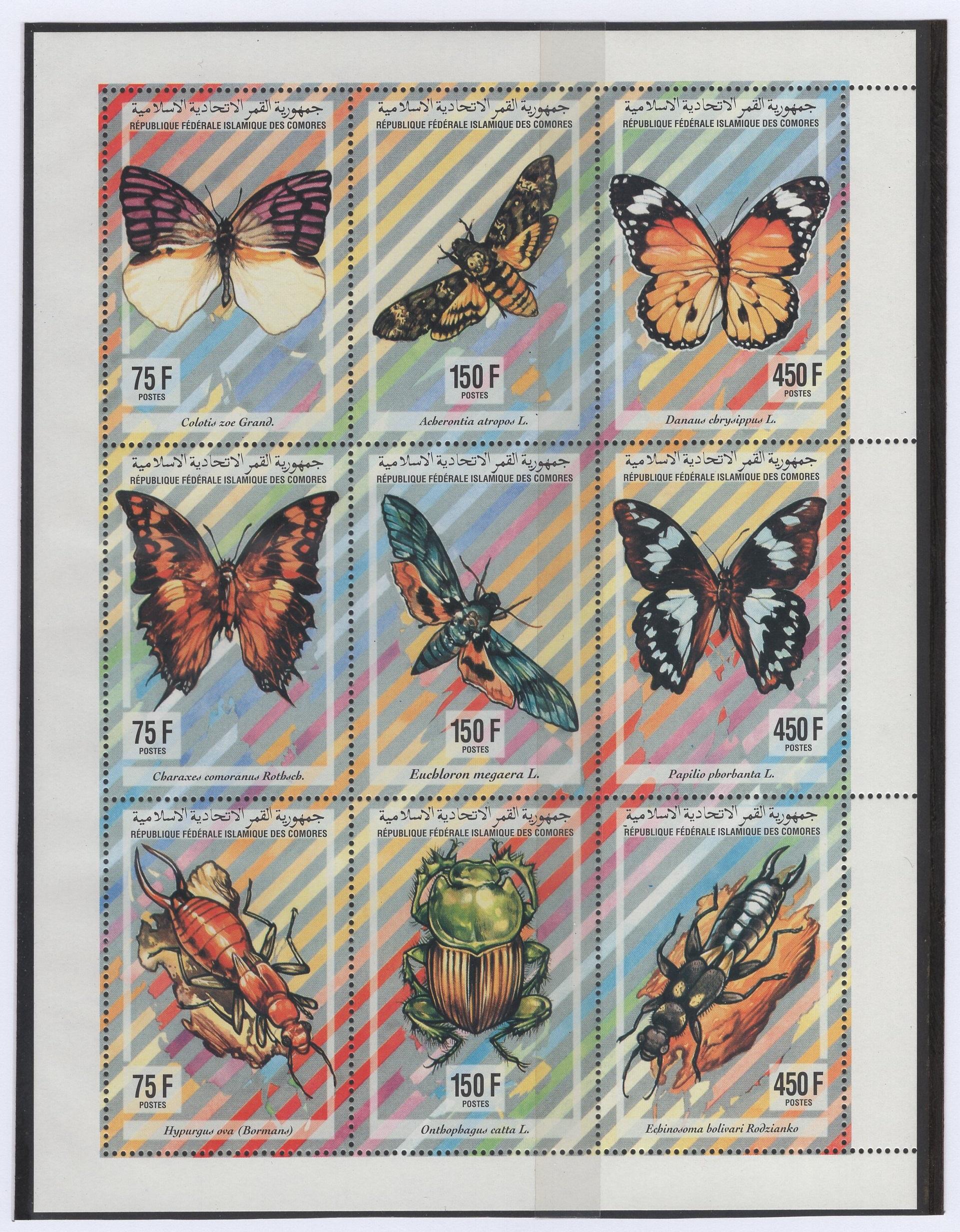 Почтовые марки. Коморы, 1994 г. Бабочки. №1034-1042. (16,2 е)