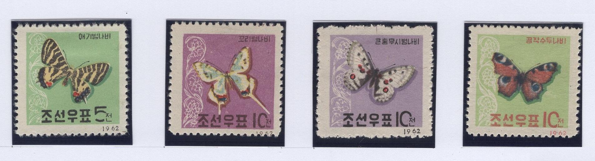 Почтовые марки. КНДР, 1962 г. Бабочки. №380-383 (Mi: 16.00 Евро).