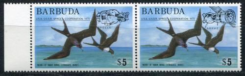 Почтовые марки. Барбуда. 1975г. Космос. Союз-Аполлон. Надпечатка. Птицы. №227-228 (Mi : 16.00 E).