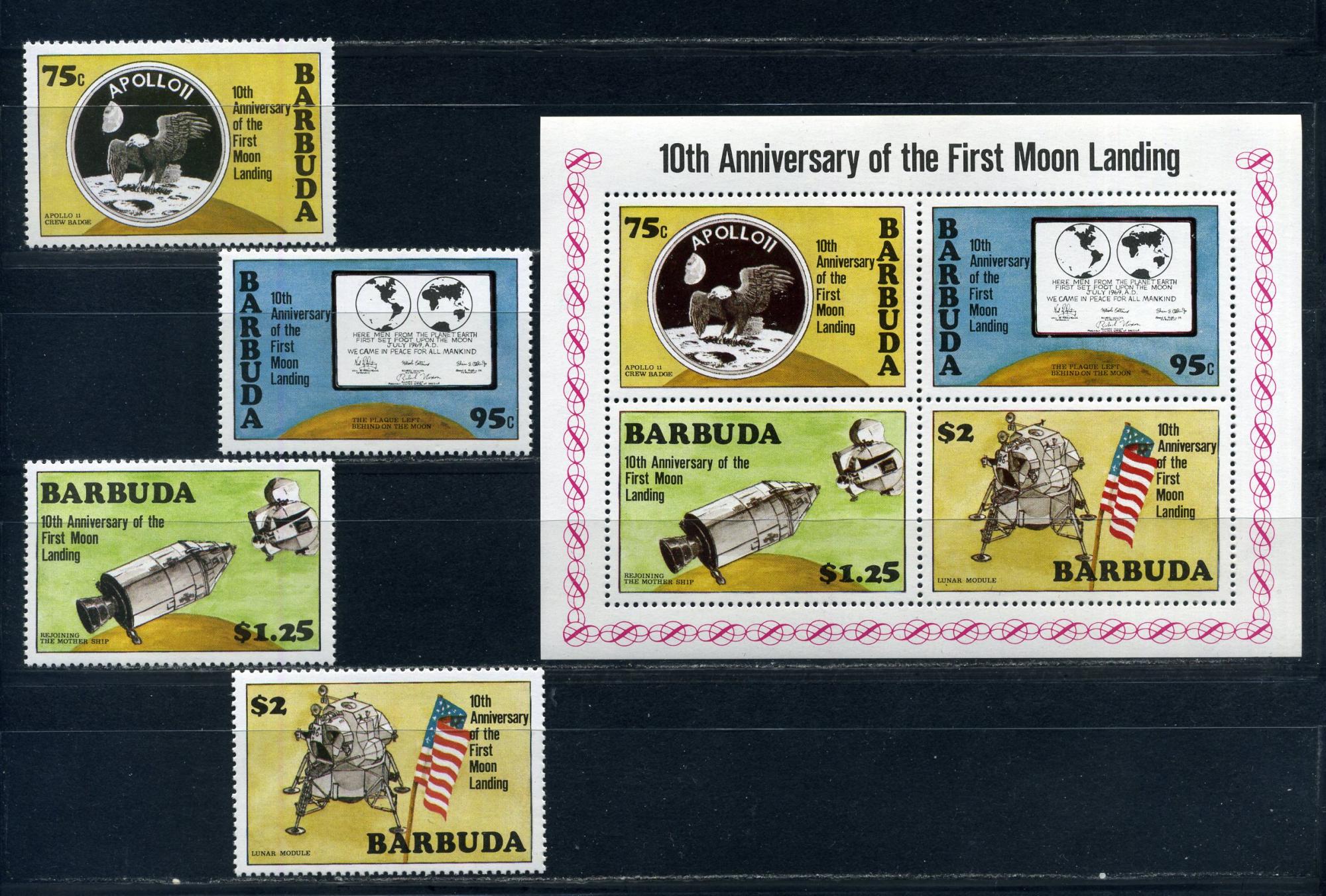 Почтовые марки. Барбуда. 1980г. Космос. Аполло-11. №483-486. Блок №50.